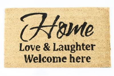 Dørmåtte i kokos home love laughter i 40x70 cm